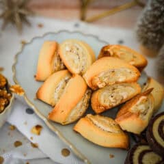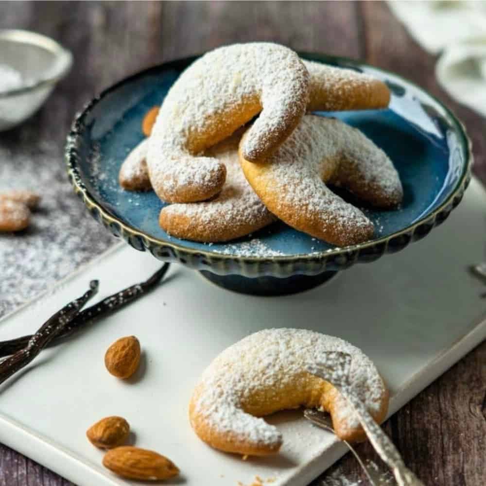 Yes! Every recipe has a clear difficulty rating (⭐ to ⭐⭐⭐). Start with easier German classics like Kokosmakronen (coconut macaroons) or Mama’s Schneeflocken and work your way up to advanced recipes like Dominosteine. The German 1-2-3 shortcrust pastry formula is so simple that anyone can master it!